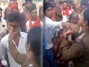 महिला थाना प्रभारी को भीड़ में पड़ा थप्पड़, हुआ वीडियो वायरल
