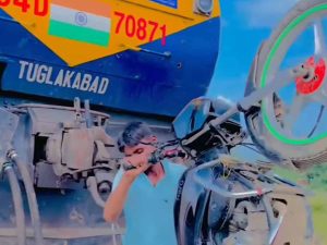 ट्रैन को बाइक से खींचने चला लड़का, देखे वायरल हो रहा वीडियो