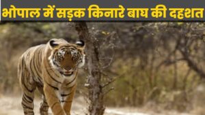 भोपाल में सड़क किनारे बाघ की दहशत