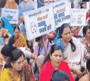 भोपाल में महंगाई के खिलाफ महिला कांग्रेस का प्रदर्शन: सिलेंडर-चूल्हा लेकर सड़कों पर उतरीं महिलाएं